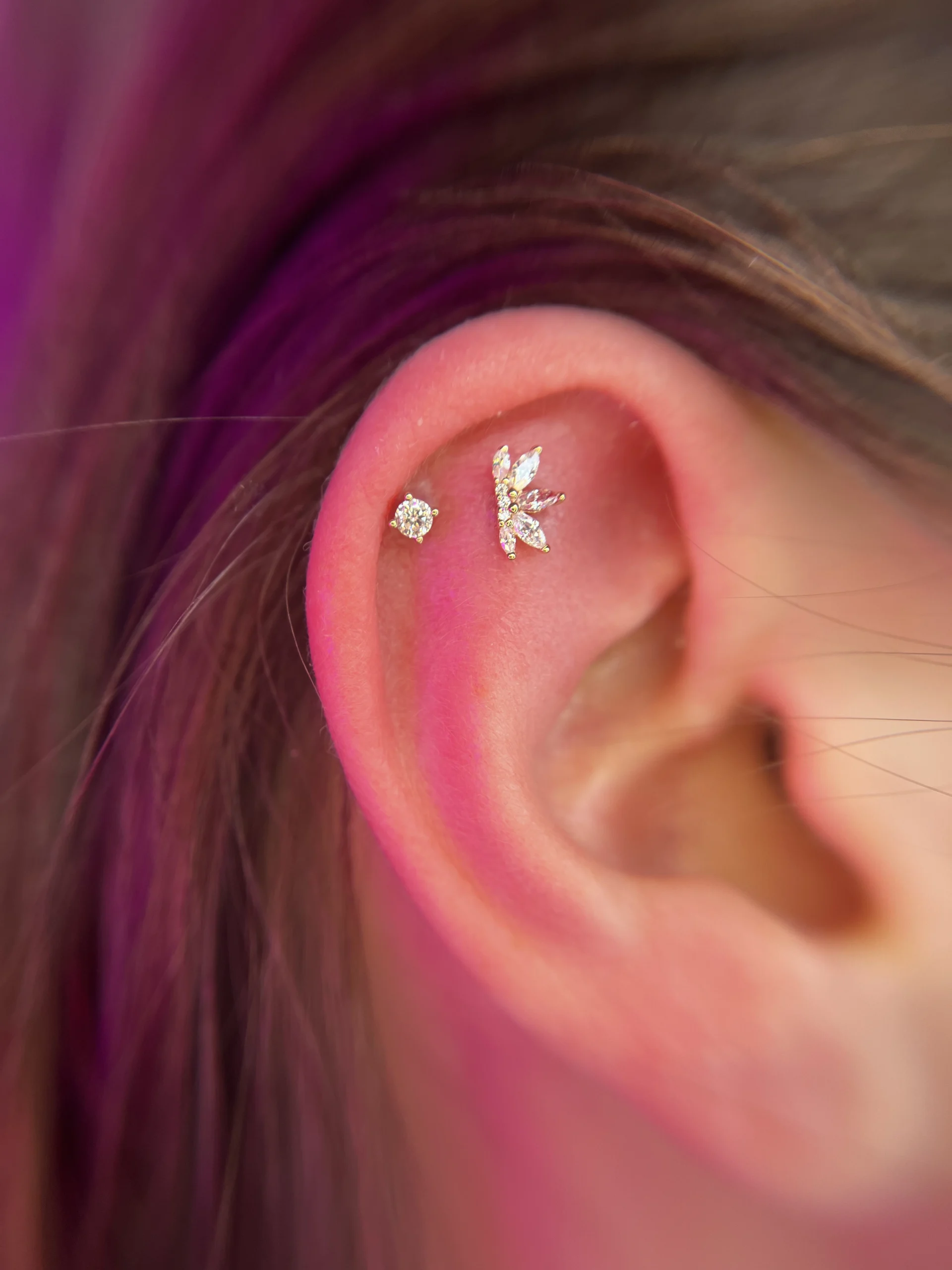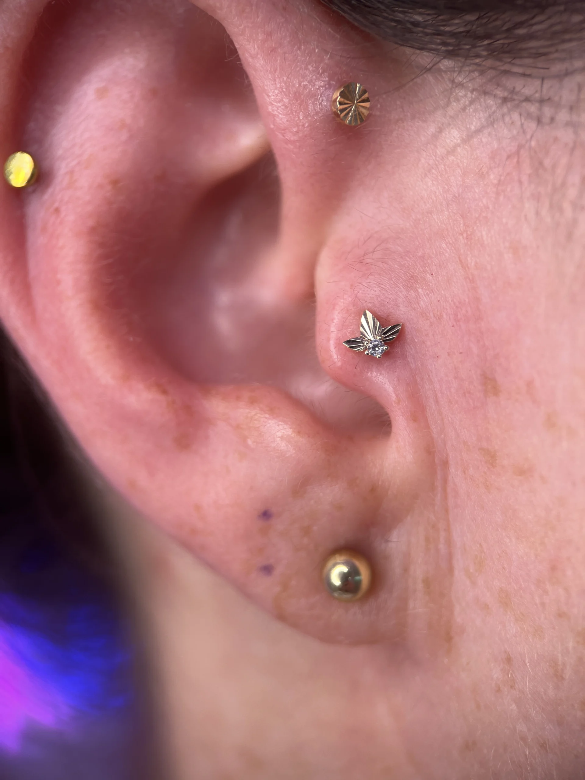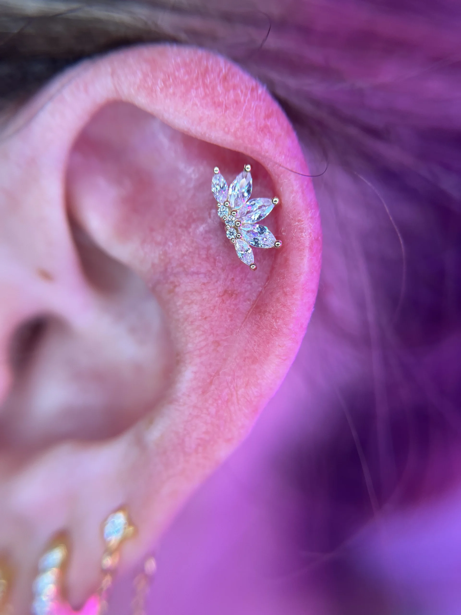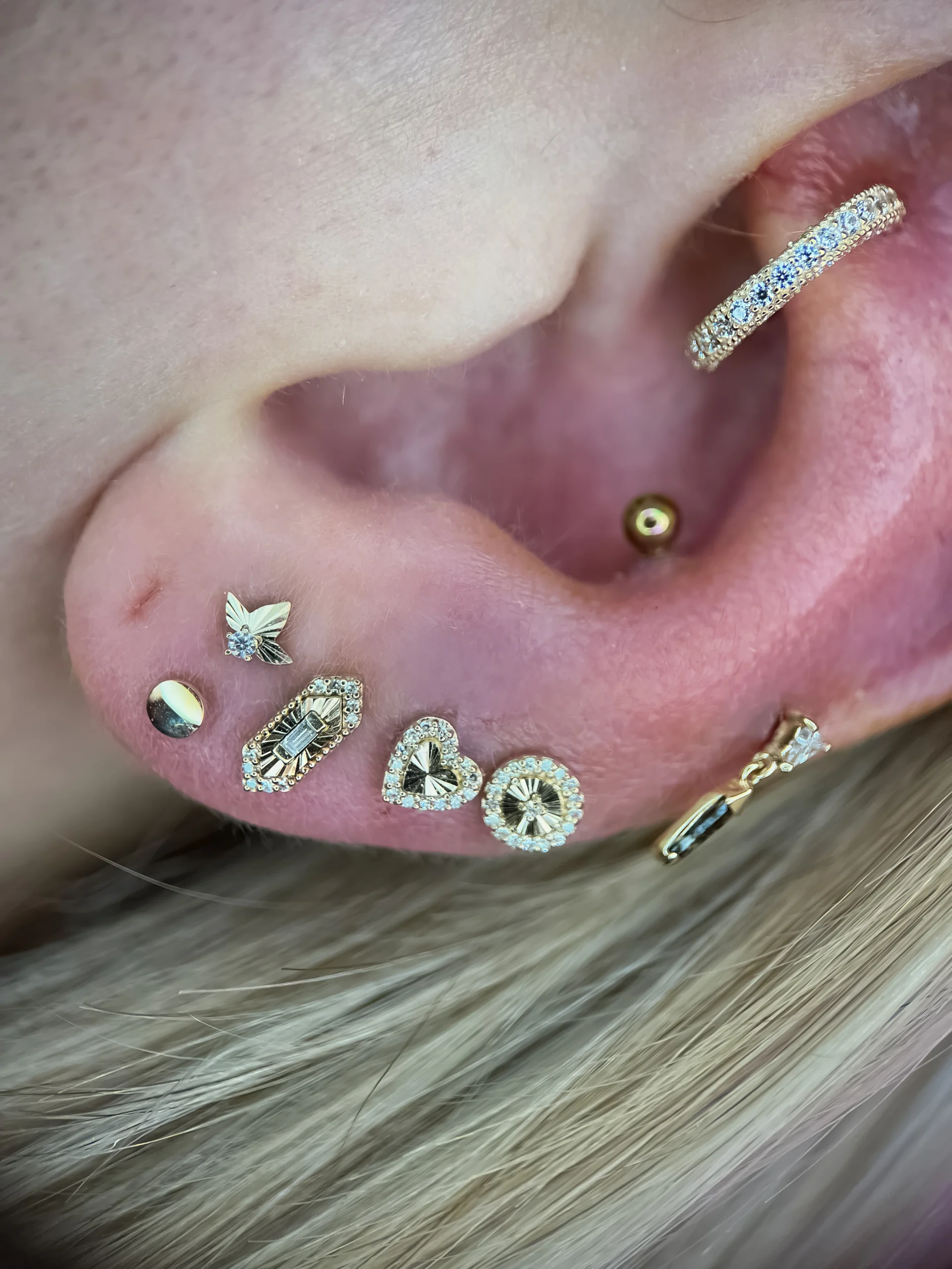 W galerii zobaczysz różnorodne projekty — od subtelnych zdobień po bardziej wyraziste konfiguracje — które pokazują, jak pięknie złoto współgra z anatomią i podkreśla charakter stylowych przekłuć.