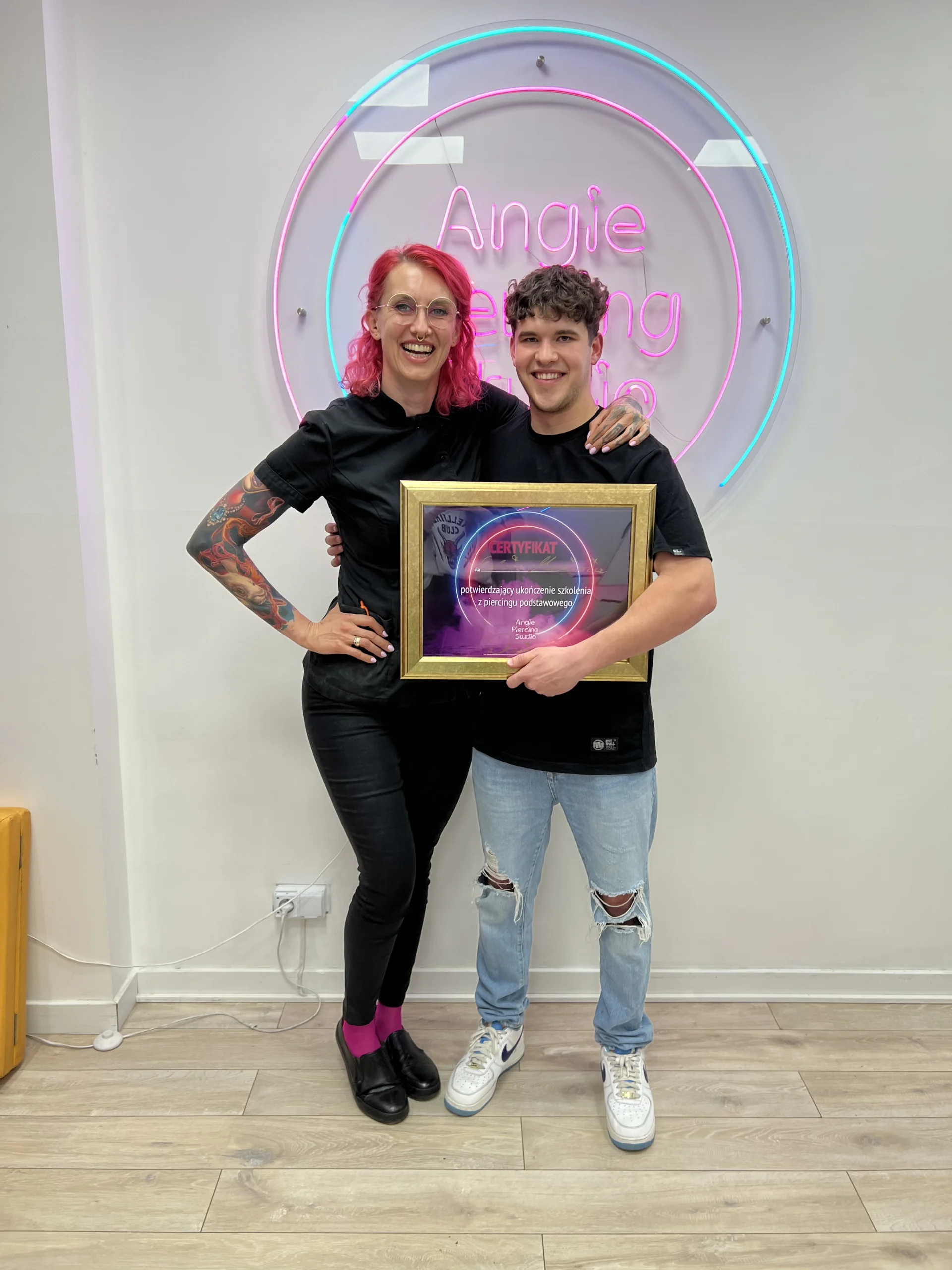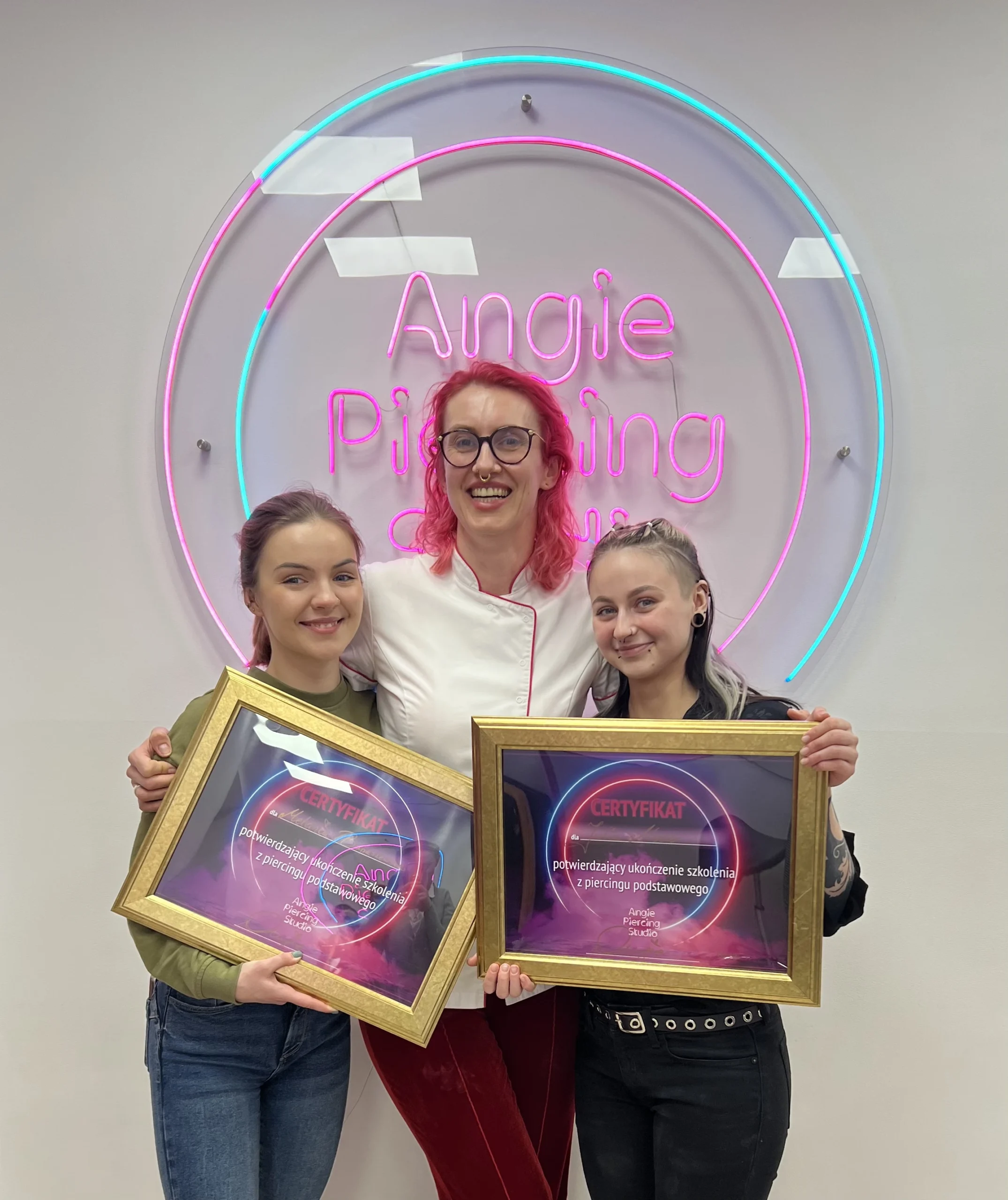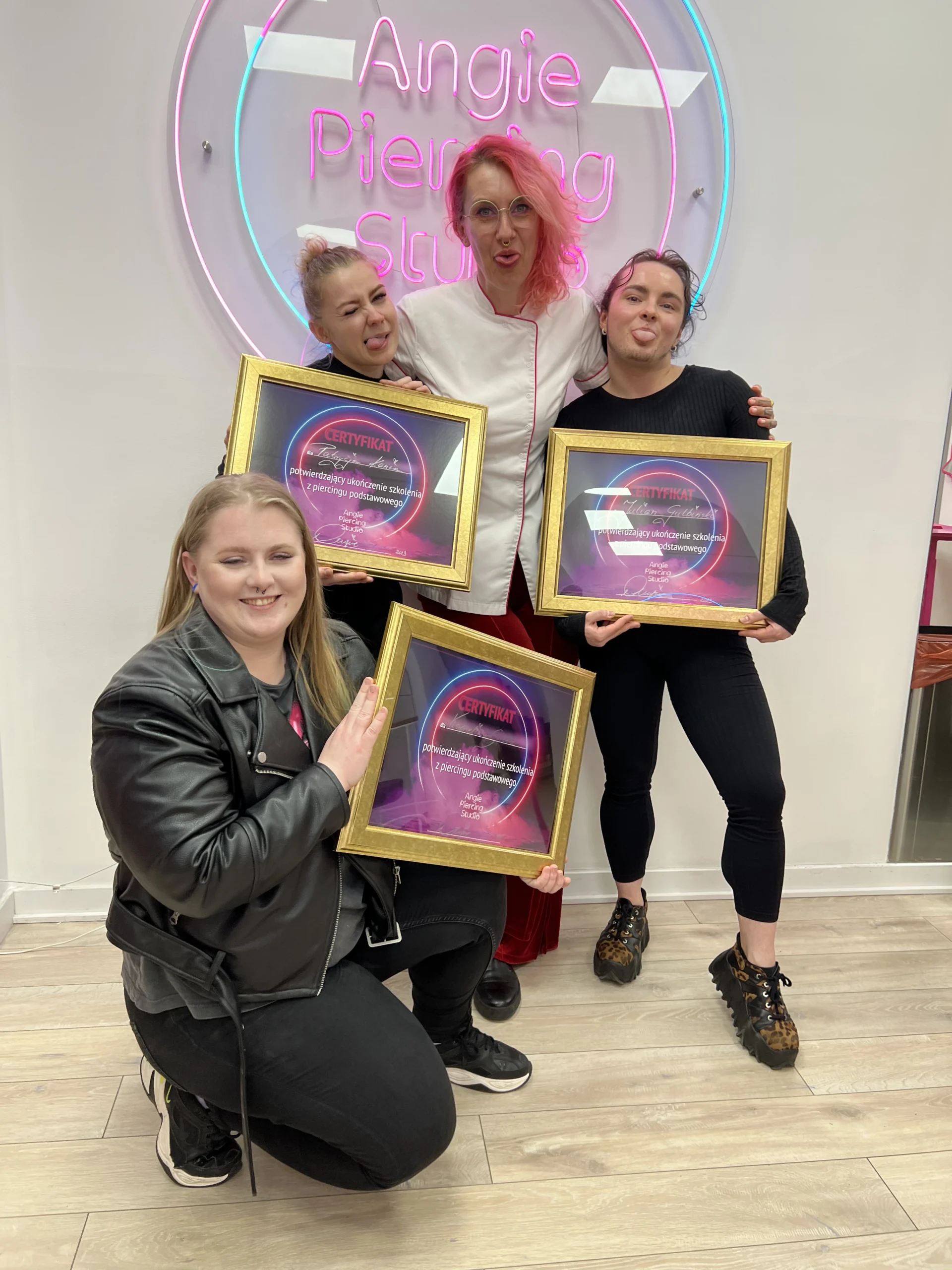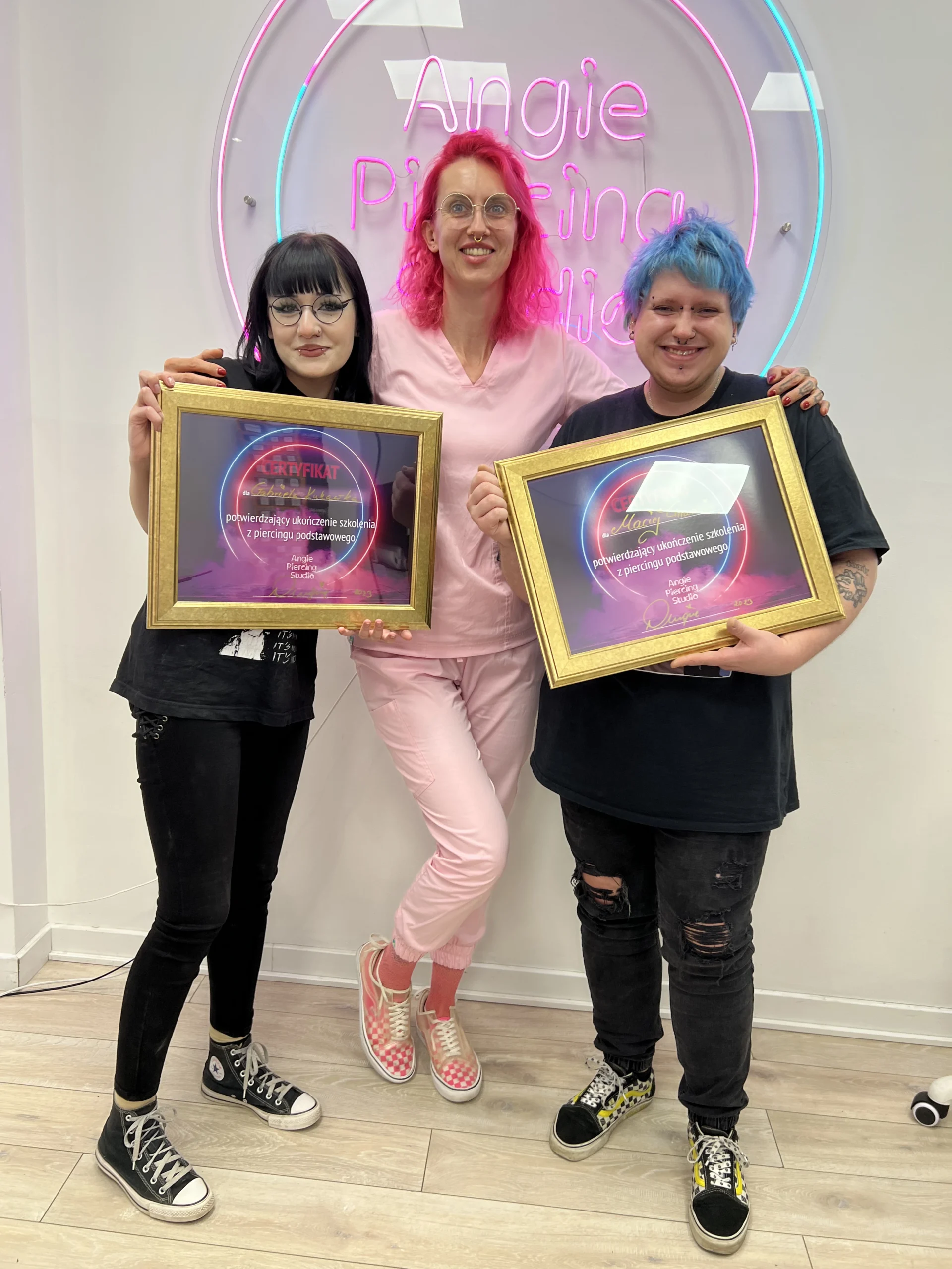 Odkryj zdjęcia z kursantami w Angie Piercing Studio w Warszawie – dynamiczne szkolenia, praktyczne ćwiczenia i profesjonalne wsparcie naszych ekspertów. Zainspiruj się doświadczeniem innych i podnieś swoje umiejętności w piercingu.