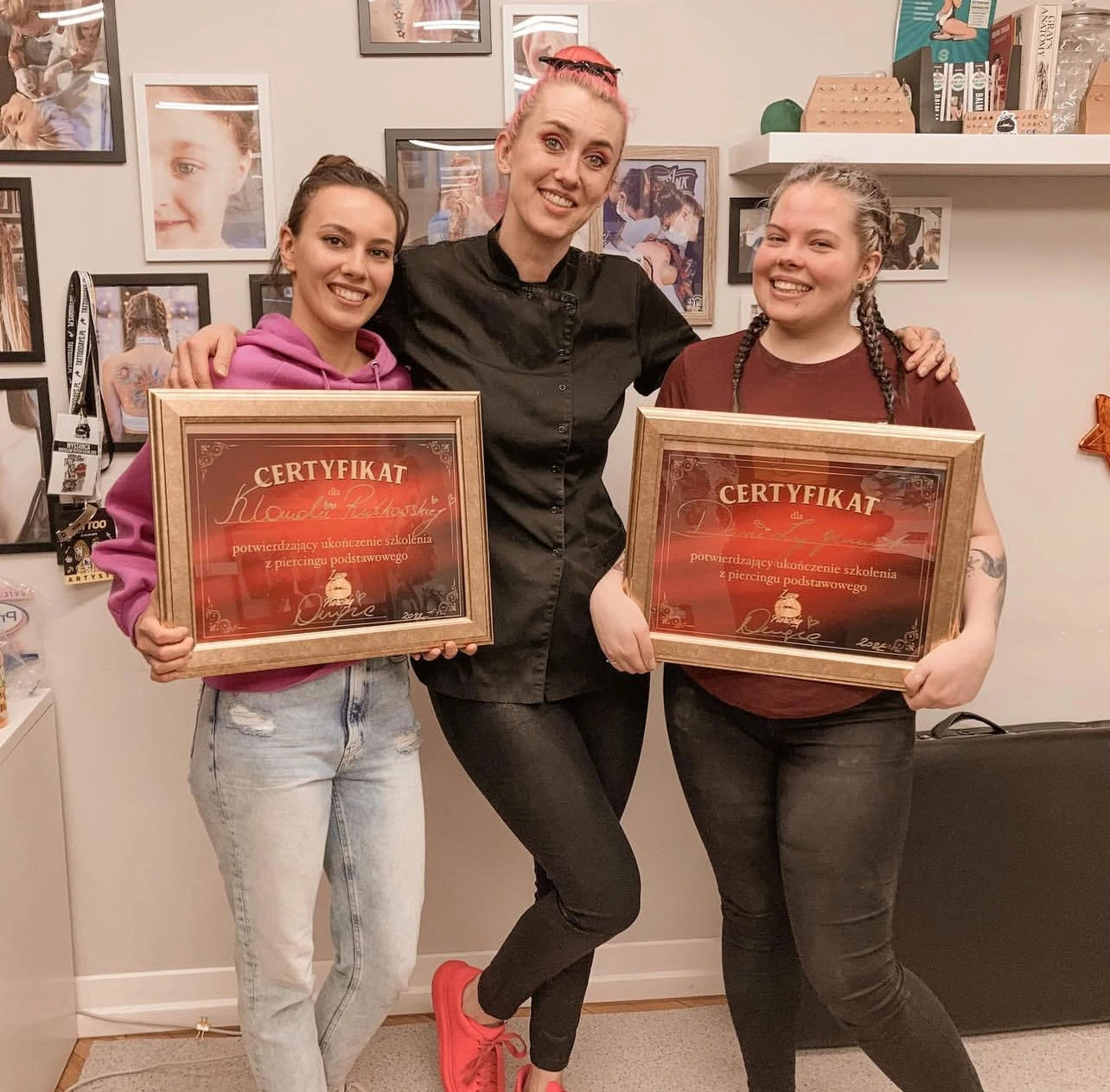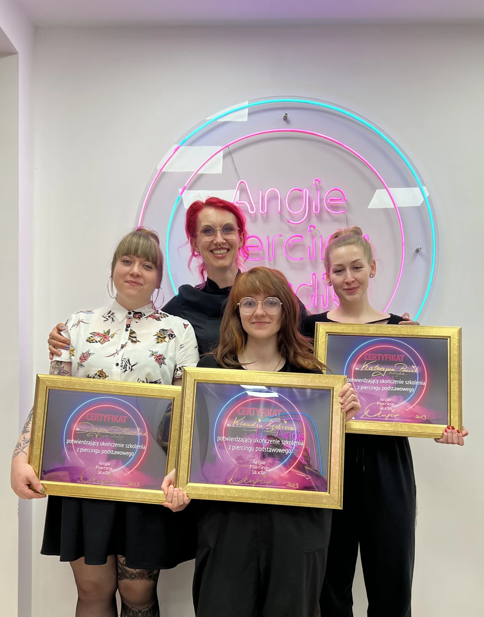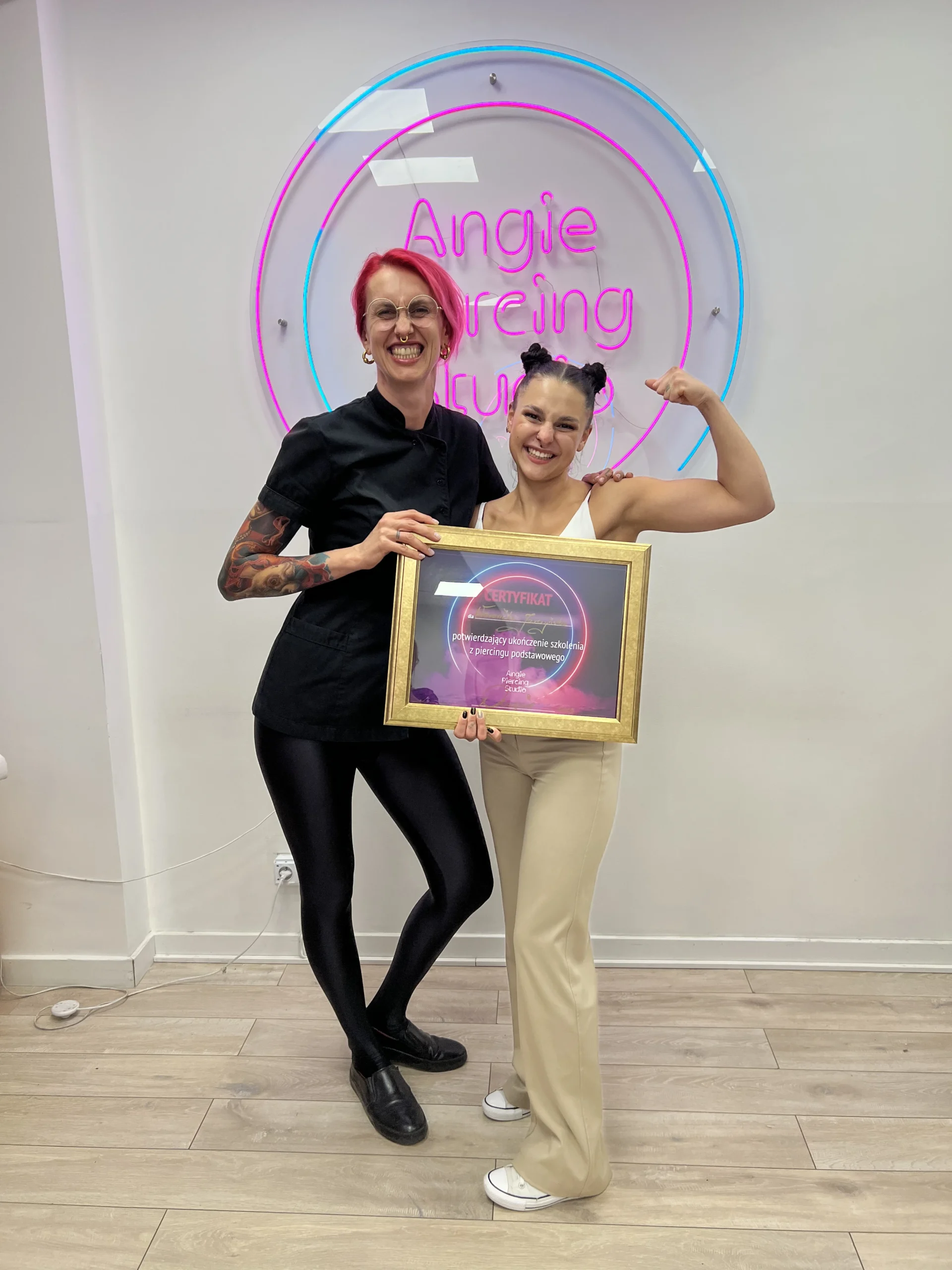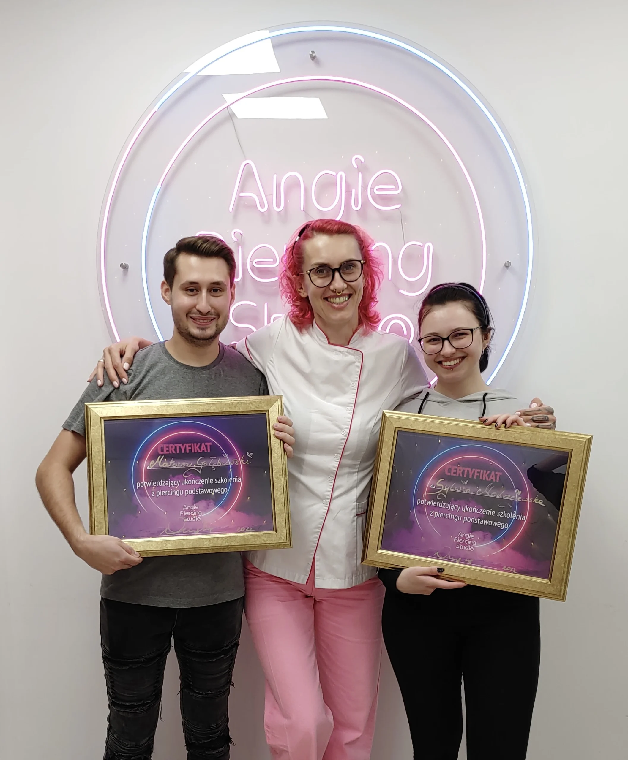 Odkryj zdjęcia z kursantami w Angie Piercing Studio w Warszawie – dynamiczne szkolenia, praktyczne ćwiczenia i profesjonalne wsparcie naszych ekspertów. Zainspiruj się doświadczeniem innych i podnieś swoje umiejętności w piercingu.