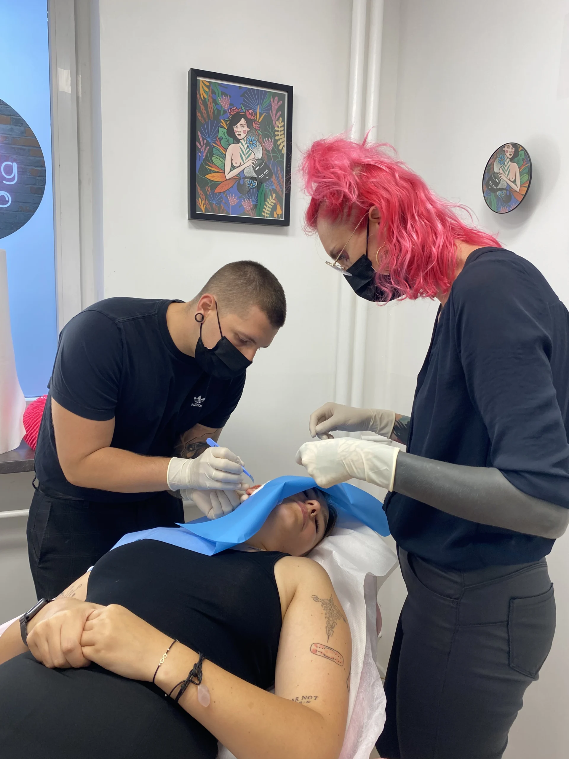 Przeglądaj zdjęcia kursantów naszego studia w Warszawie i zobacz, jak krok po kroku rozwijają swoje umiejętności w profesjonalnym środowisku. Każde szkolenie łączy teorię, praktykę i indywidualne podejście, dając kursantom pewność i profesjonalizm w wykonywaniu piercingów.