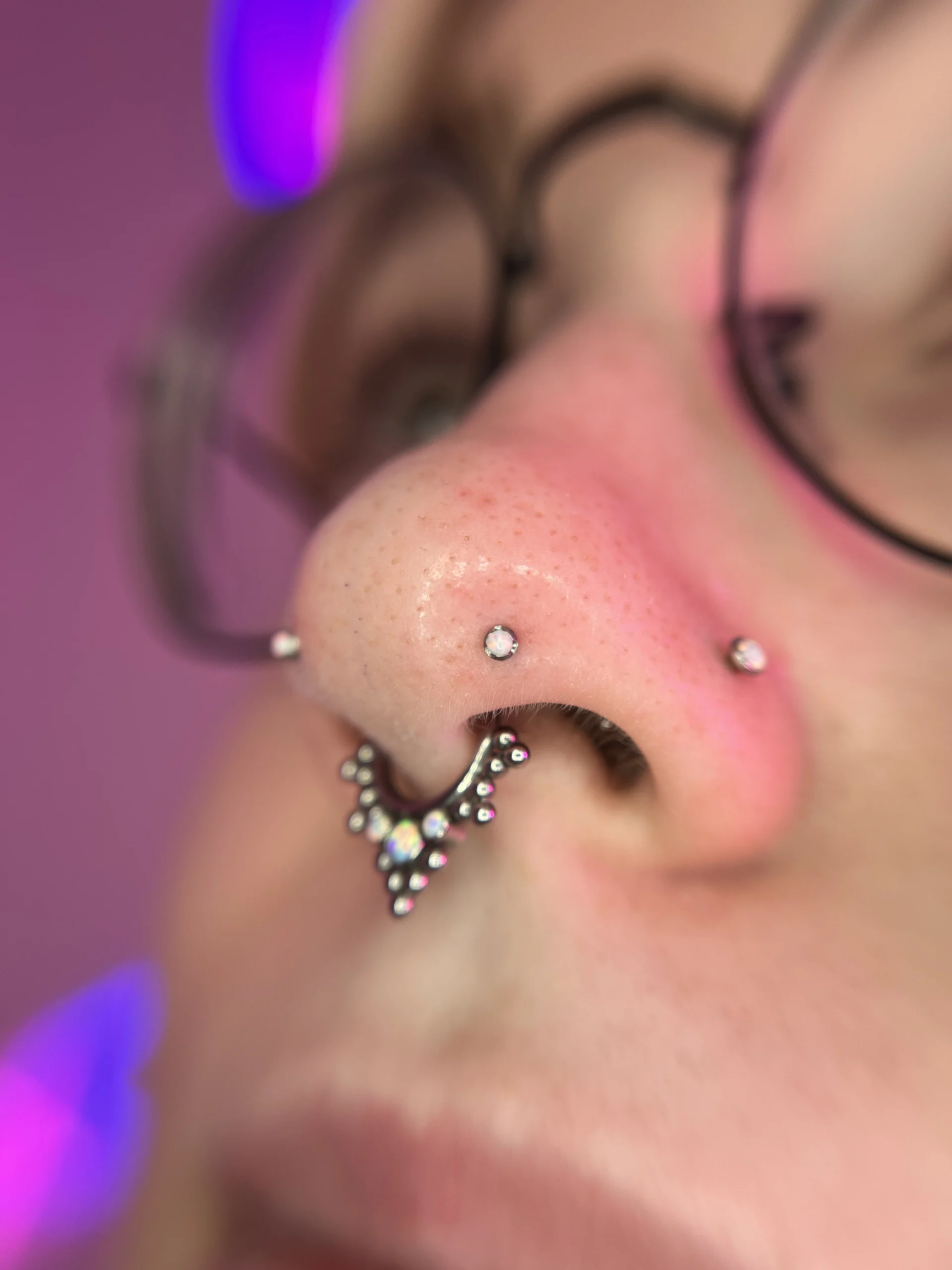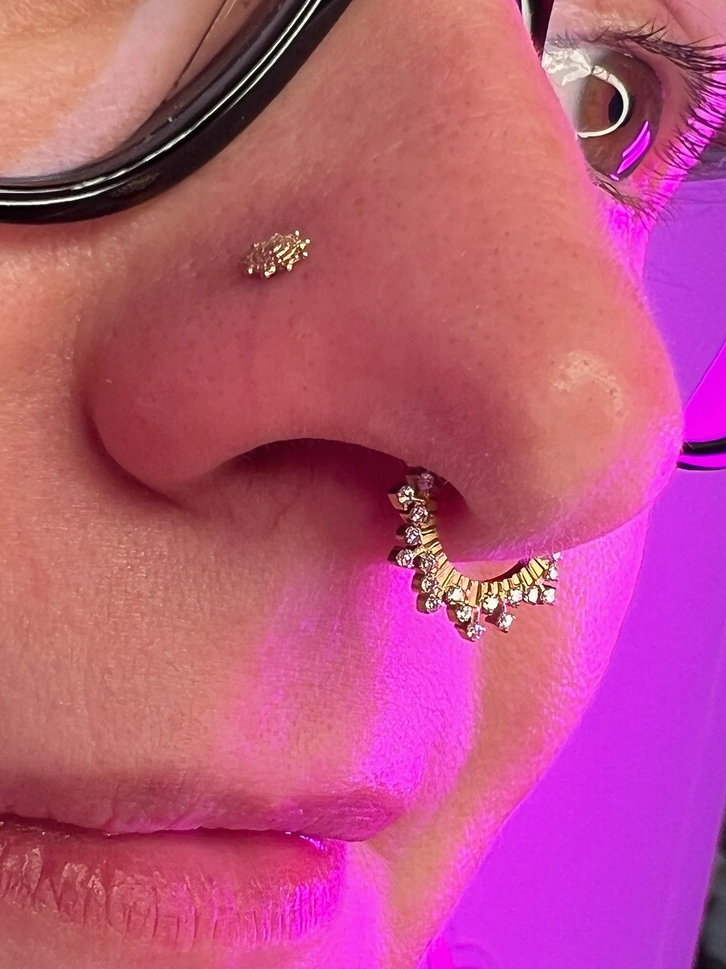 W Angie Piercing Studio w Warszawie wykonujemy piercing nosa z pełną precyzją, sterylnością i indywidualnym doborem biżuterii. Specjalizujemy się w przekłuciach takich jak nostril, septum, high nostril czy double nostril, pracując wyłącznie na certyfikowanym sprzęcie i bezpiecznych metodach. Dbamy o komfort, szybkie gojenie i perfekcyjny efekt dopasowany do Twoich rysów twarzy. Jeśli szukasz sprawdzonego studia piercingu nosa — jesteś w idealnym miejscu.