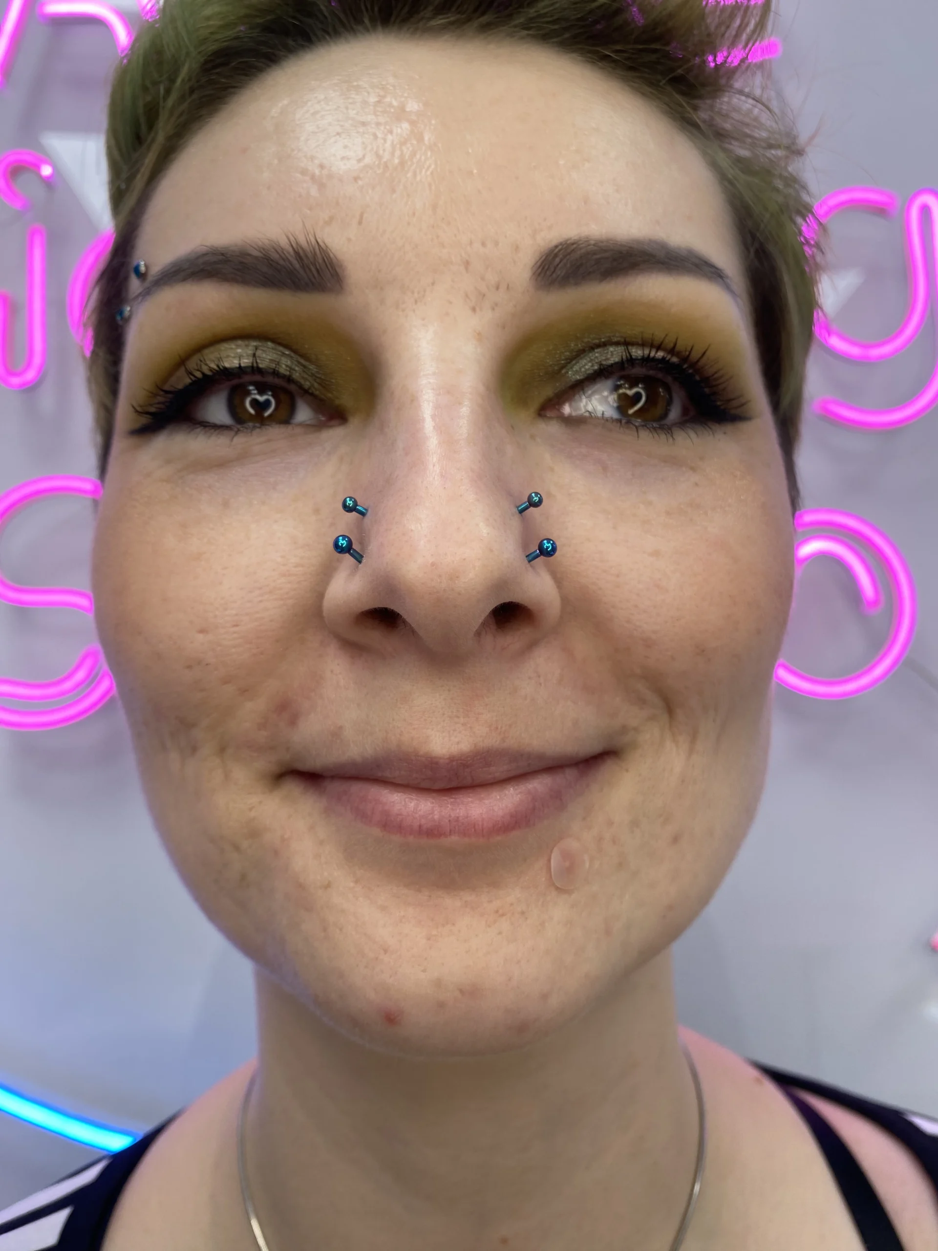 Zajrzyj do naszej galerii piercingu nosa i zobacz, jak wyglądają realne efekty przekłuć wykonanych w Angie Piercing Studio w Warszawie. Prezentujemy różne style i techniki, w tym nostril, septum i high nostril, wykonane z użyciem certyfikowanej, hipoalergicznej biżuterii. Galeria pokazuje precyzję, estetykę i naturalne dopasowanie piercingu do twarzy — idealną inspirację, jeśli planujesz własny nos slay moment.